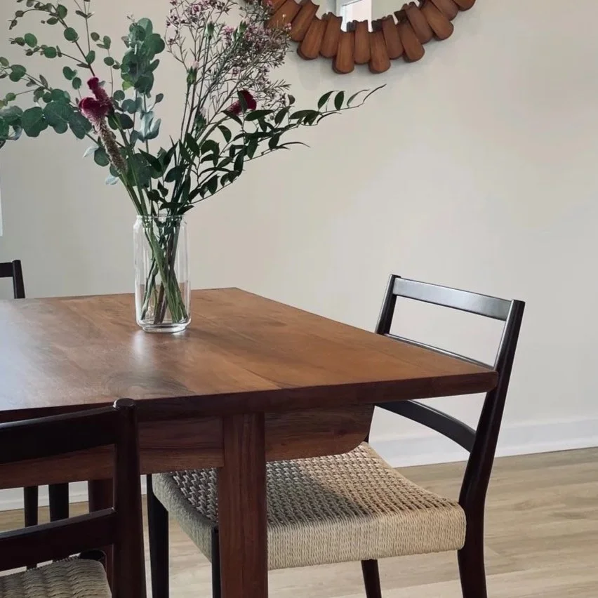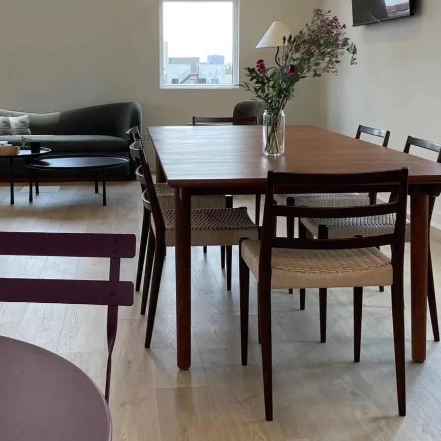 This room was refreshed by replacing the carpet with hardwood flooring and repainting the walls and ceiling in a warm tone, creating a serene, inviting atmosphere. The furniture layout was thoughtfully planned to give the tenant flexible day-to-day use, while also allowing the space to easily transform into a contemporary setting for gathering and entertaining